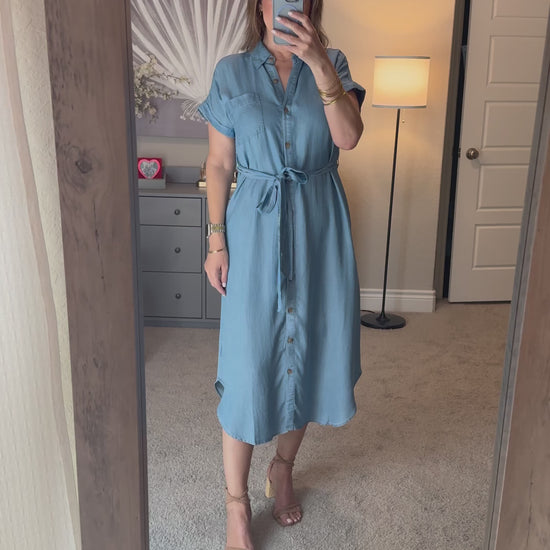 Maverick Chambray Belted Midi Dress